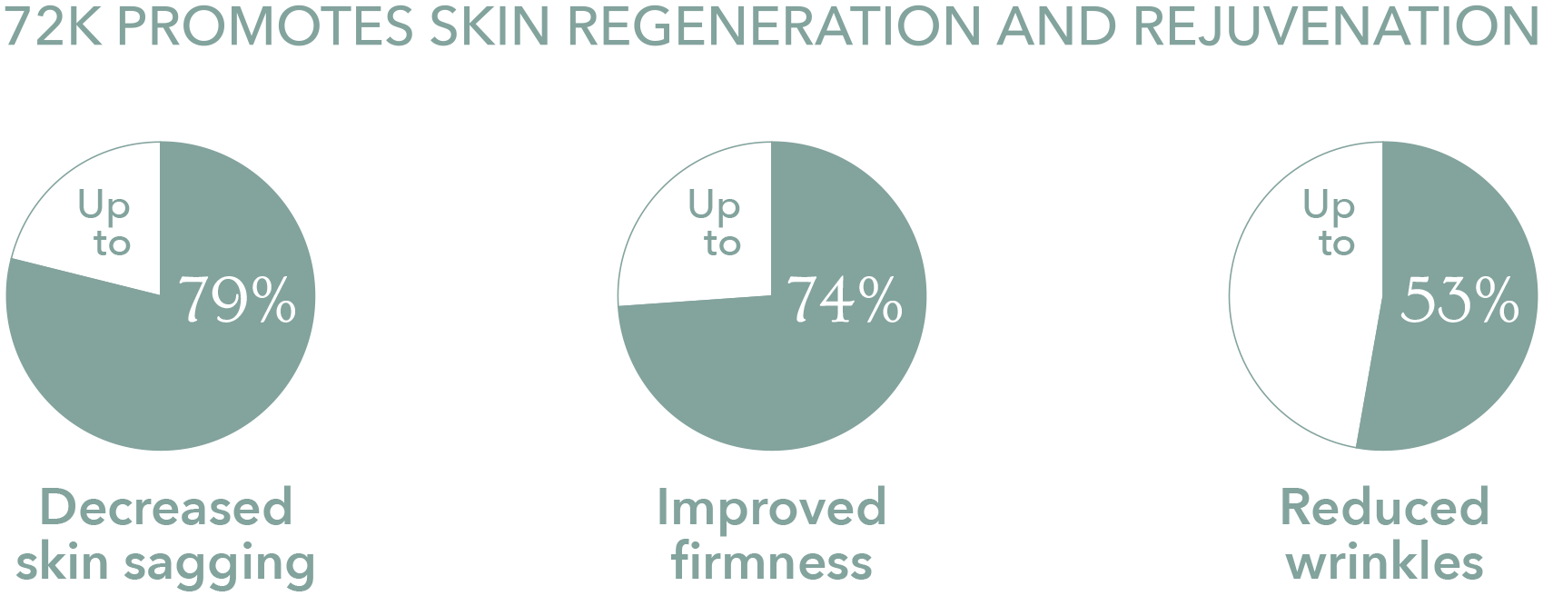 The multi-beneficial effect of 72k is based on the power of the Artemisia C-08UC Complex combined with patented technologies. Artemisia C-08UC Complex protects the skin from environmental stress and hostile germs, regenerates, and repairs. The antioxidant properties of Artemisia C-08UC Complex combat premature skin aging resulting from UV radiation and environmental pollutants. Furthermore, its antiseptic and antibacterial features serve as a protective barrier for the skin, mitigating any inflammation that might arise. Artemisia C-08UC Complex also revitalizes aging skin by enhancing the skin’s regeneration process, leading to a smoother and firmer appearance